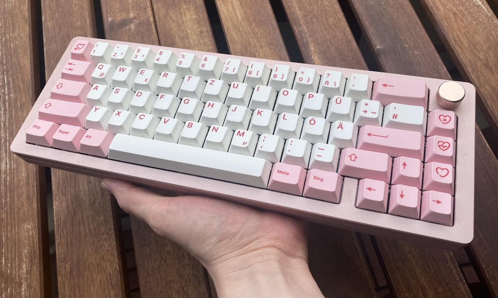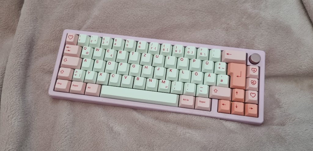 Ein liebliches Keycap Set in Weiß und Pink mit optionalen etwas dunkleren Pinken Akzenttasten.