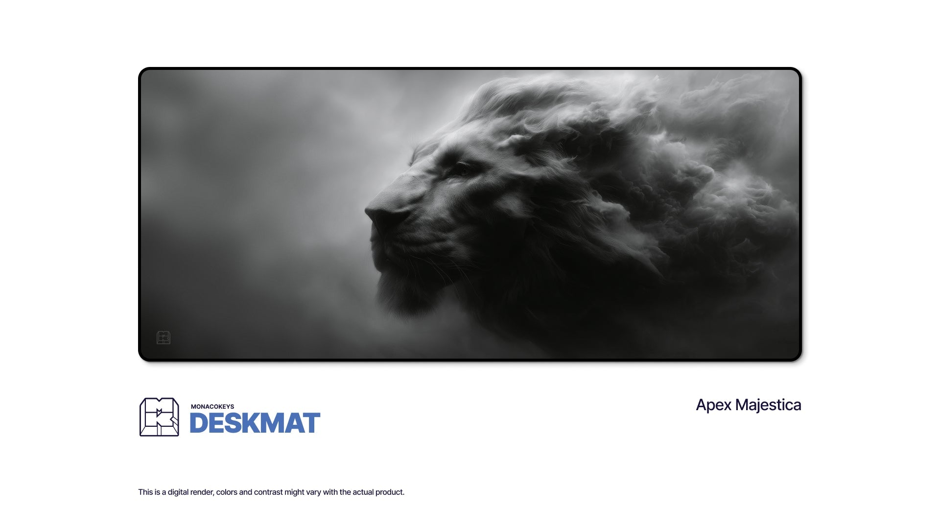 The Apex Majestica is more than just a deskmat—it’s a visual statement. Featuring a majestic lion’s profile sculpted from swirling mist, it embodies strength, serenity, and creative energy. A design that inspires and commands attention—perfect for setups that speak with presence.