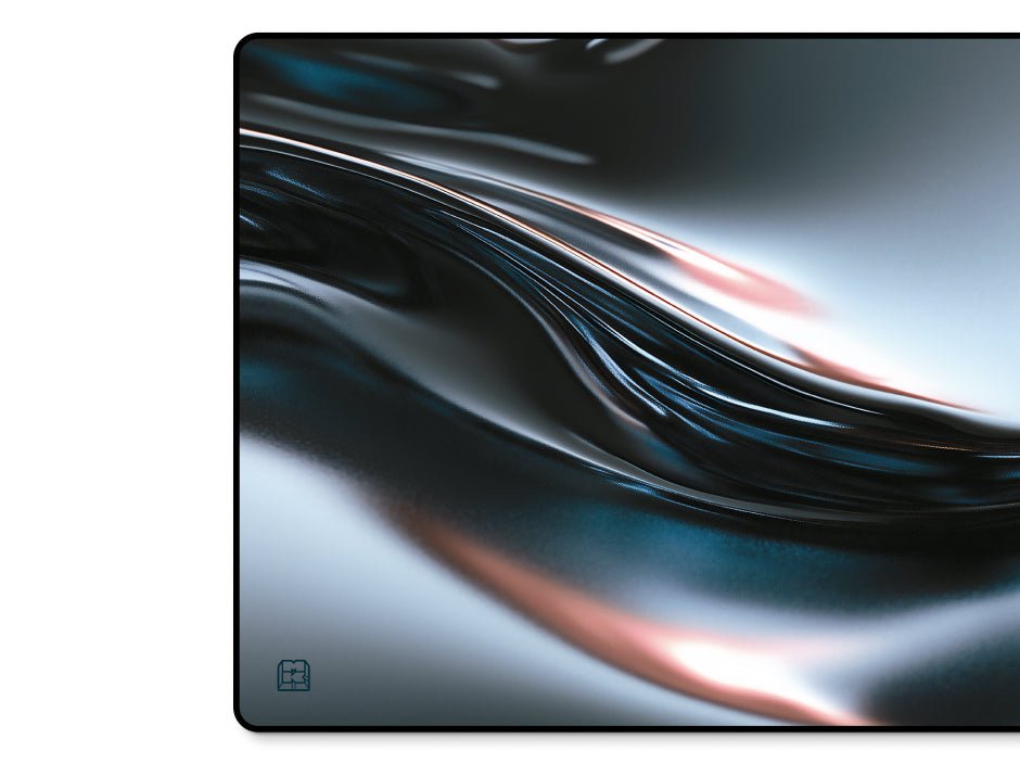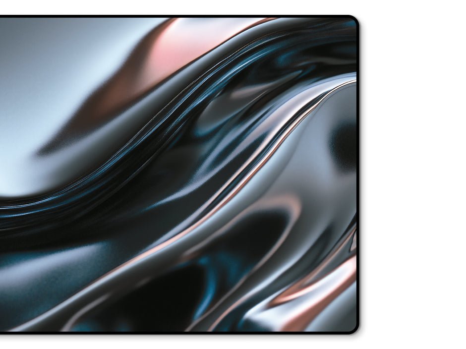The ChromaFlow Deskmat captures the hypnotic motion of liquid metal. With reflective waves in silver, black, and copper, it radiates power, elegance, and futuristic aesthetics—a true statement piece for any workspace or gaming desk.