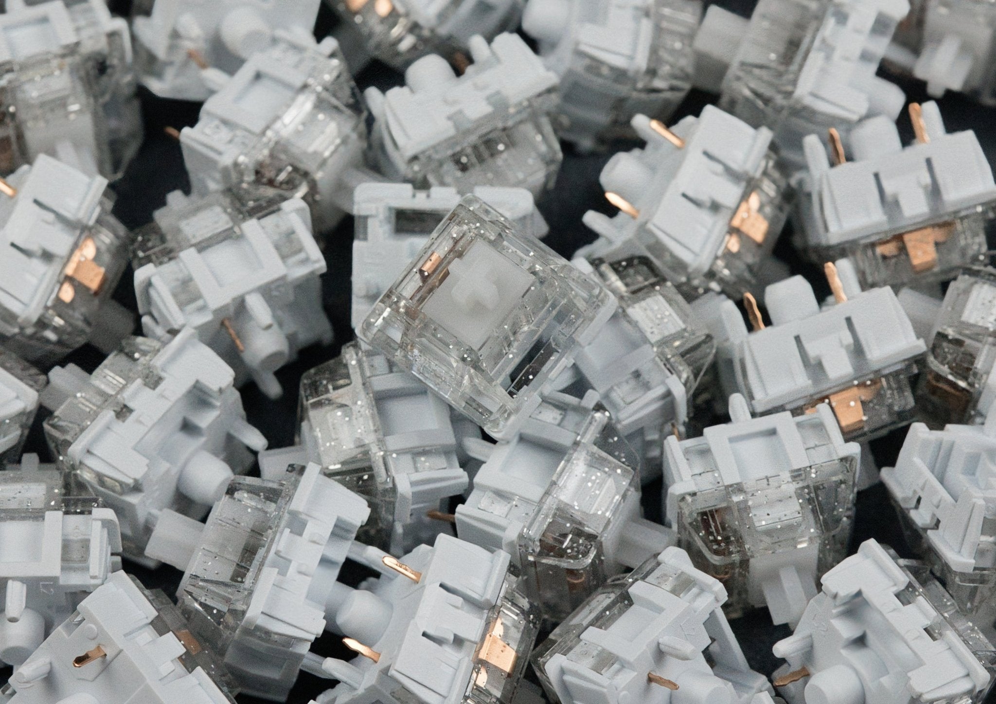 The HMX Snowfall switches are the result of a collaboration between HMX and designer TR – developed as an evolution of the popular “Snow” switches, but with upgraded materials and refined performance. With an ultra-short total travel of just 3 mm and a clearly defined tactile bump, they deliver an immediate, energetic typing feel. The transparent housing with embedded glitter enhances RGB diffusion and adds visual elegance to any build.