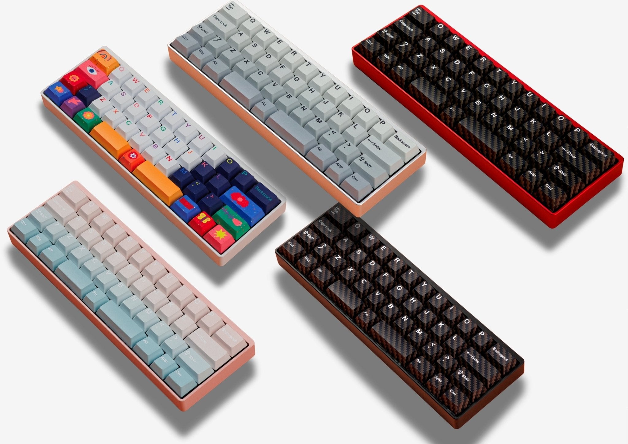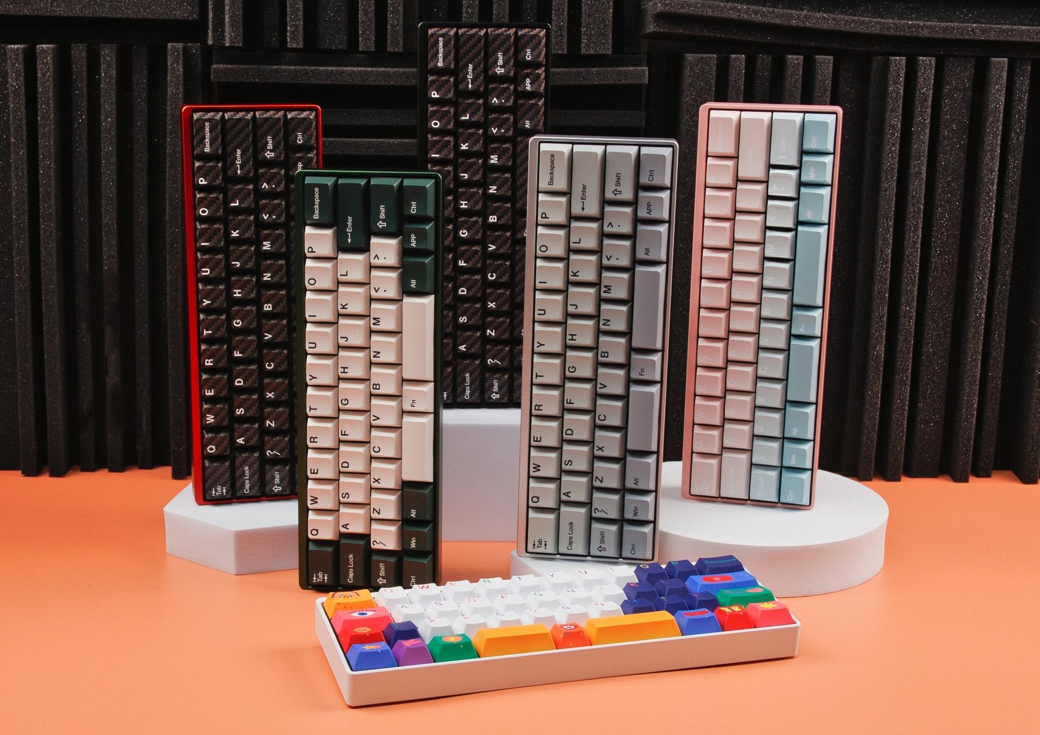 The keyboard uses a CNCâmilled aluminum case that is not only sturdy but also visually appealing. Depending on the color variant, the surface is either anodized or electrophoretically coated. You can choose from six colors: black, silver, red, white, pink, and military green.