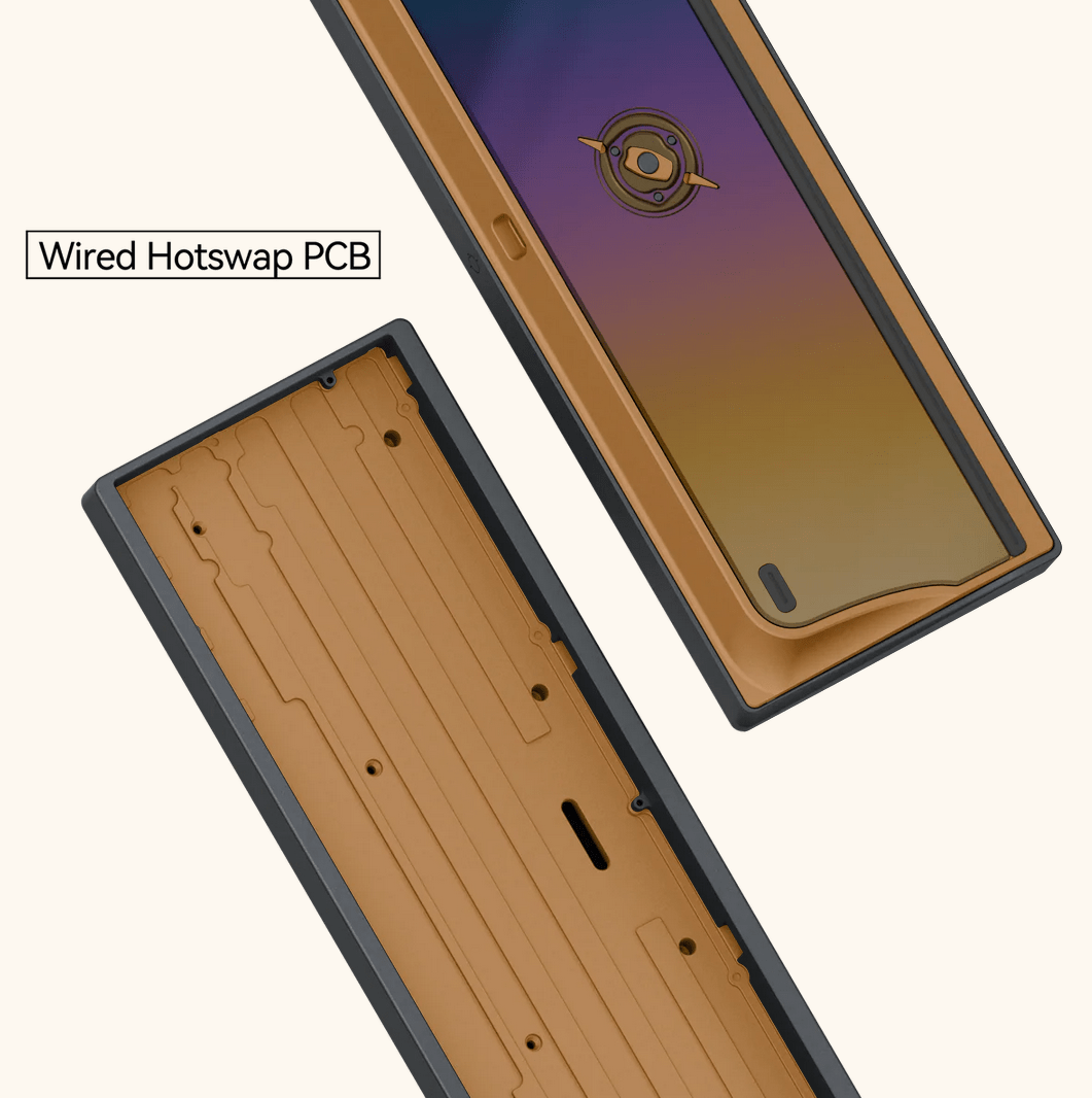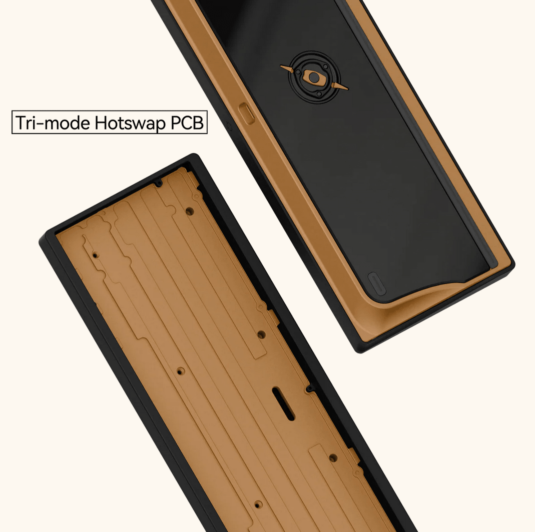 Like previous Neo keyboards, the Neo65 Cu supports both ISO (e.g. ISO-DE) and ANSI layouts and can be configured with a Solder PCB, a Tri-Mode Hot-Swap PCB (Supports Wired, Bluetooth and 2.4GHz wireless connections and comes with batteries) or Wired Hot-Swap PCB. If the Wired Hot-Swap PCB is selected, stainless steel weights are pre-installed in the battery compartments of the housing.