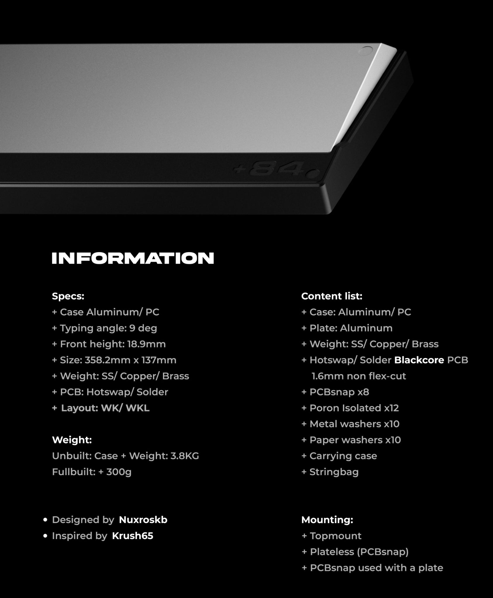 Nuxros +84 Classic TKL - 80% TKL Mechanical Aluminium Keyboard Kit [Group Buy]