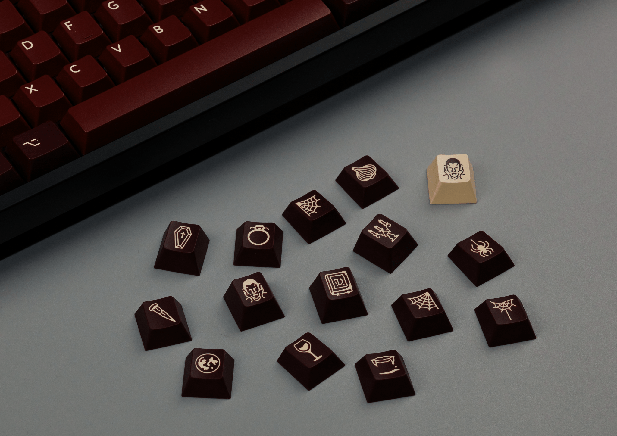 Step into the world of gothic aesthetics with the PBTFans Count Dracula Keycaps. This set was created with a clear focus on moody sophistication and flawless quality