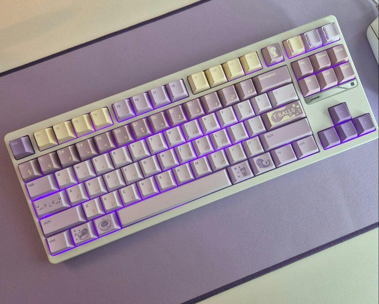 - Extras: Includes taro-themed novelty keycaps for extra flair