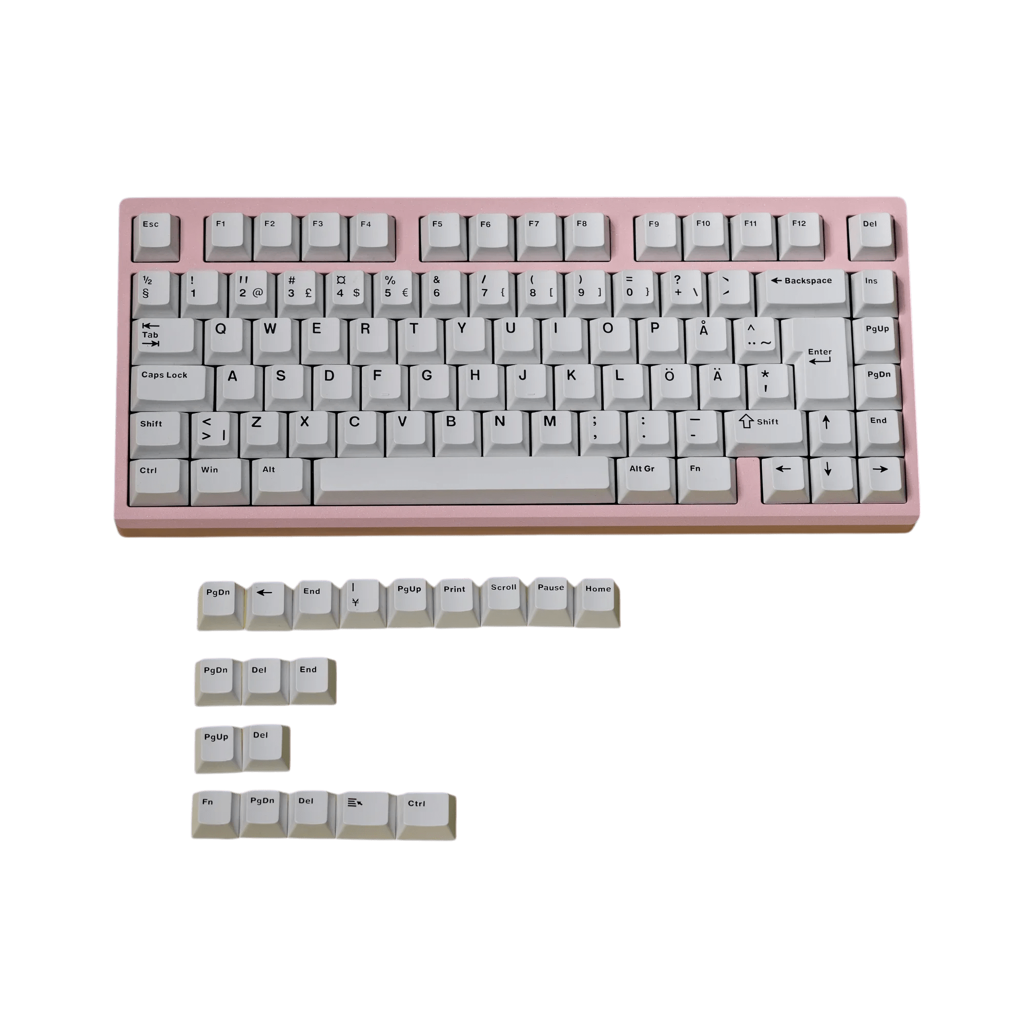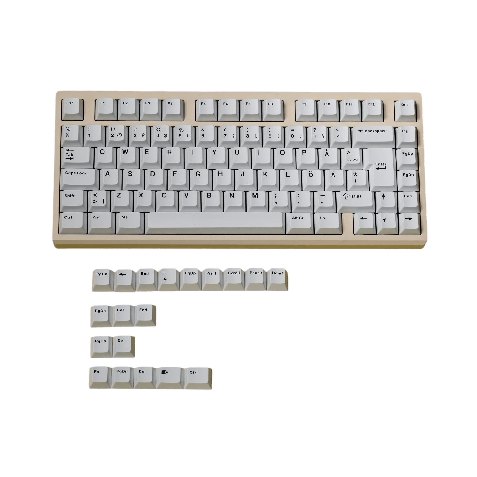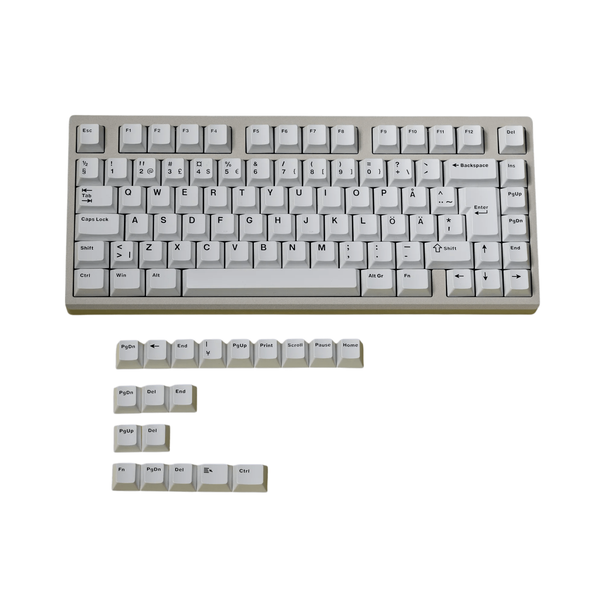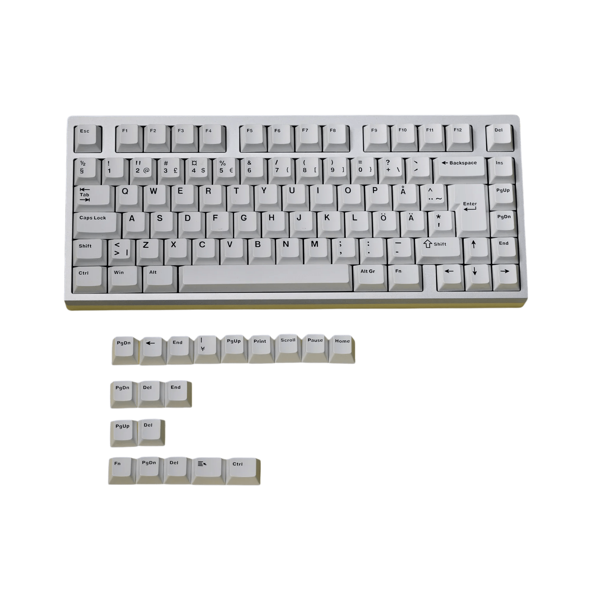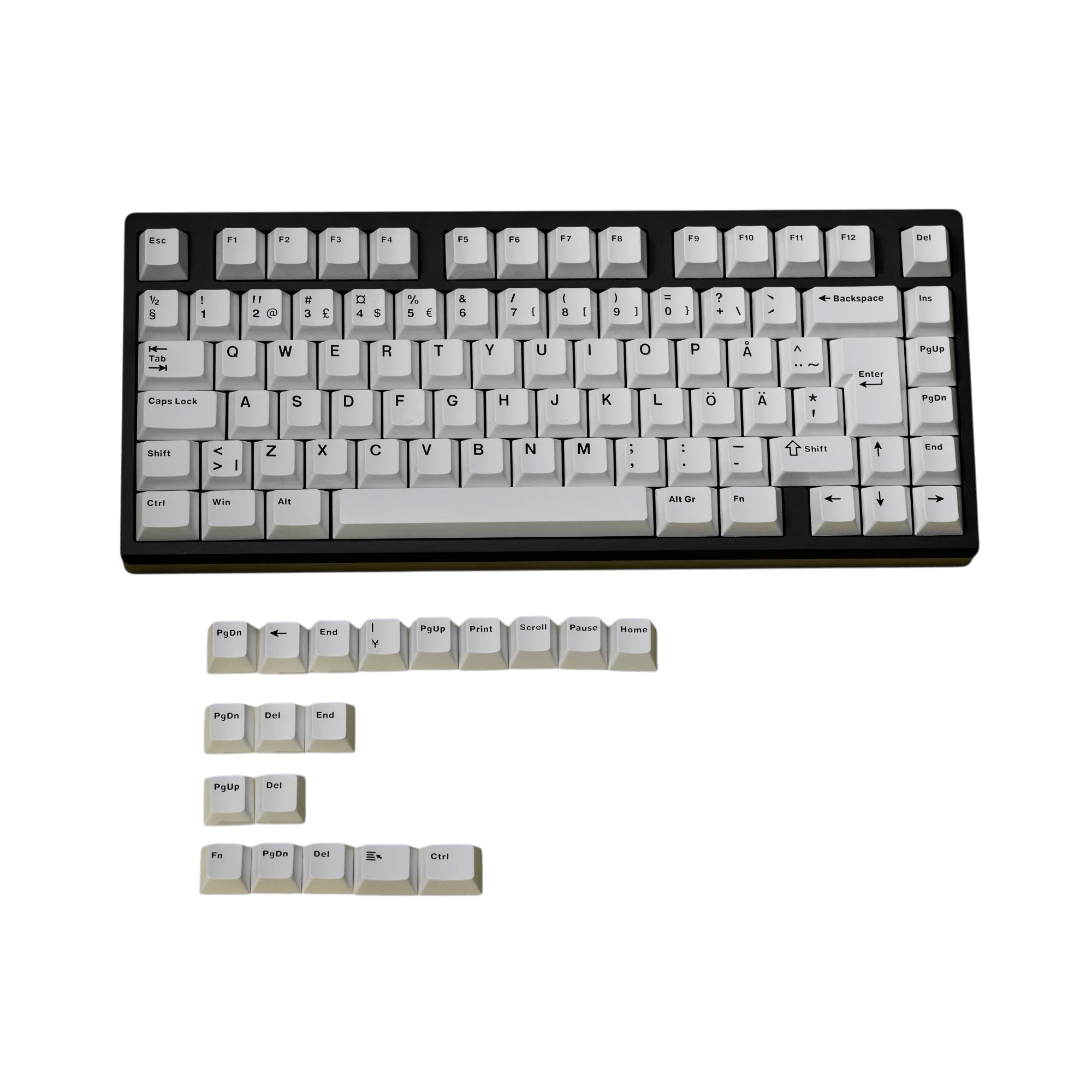 Bitte Beachten: Die ISO Varianten kommen zwar mit unterschiedlichen Gehäusefarben jedoch nur mit Schwarzen (White on Black) Keycaps für die ISO-DE Variante und Weißen (Black on White) Keycaps für alle anderen ISO Sprachvarianten.