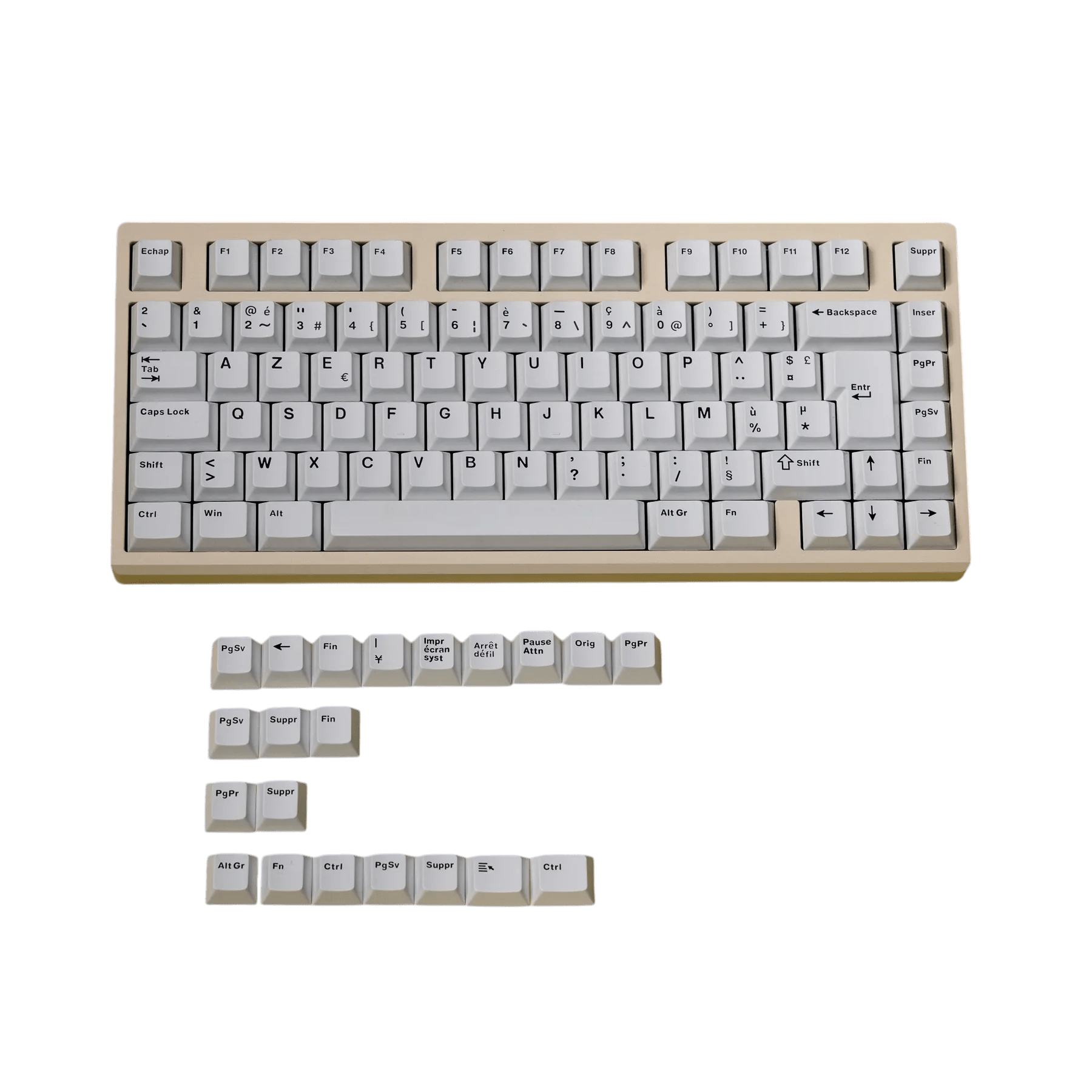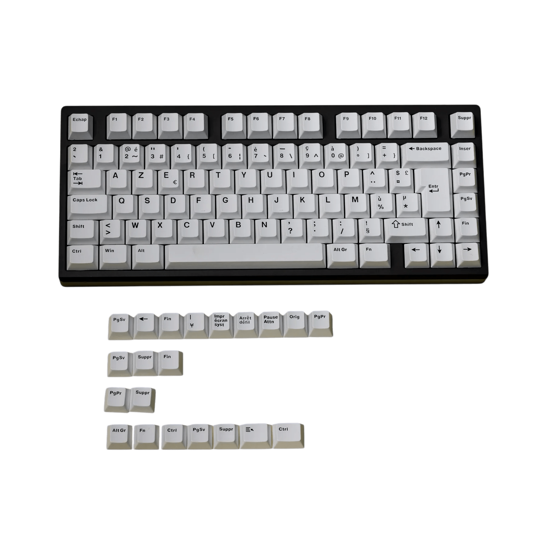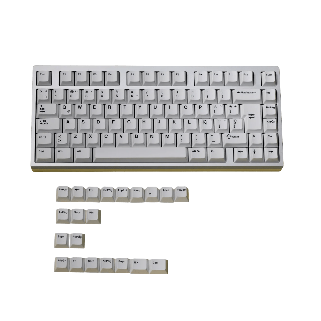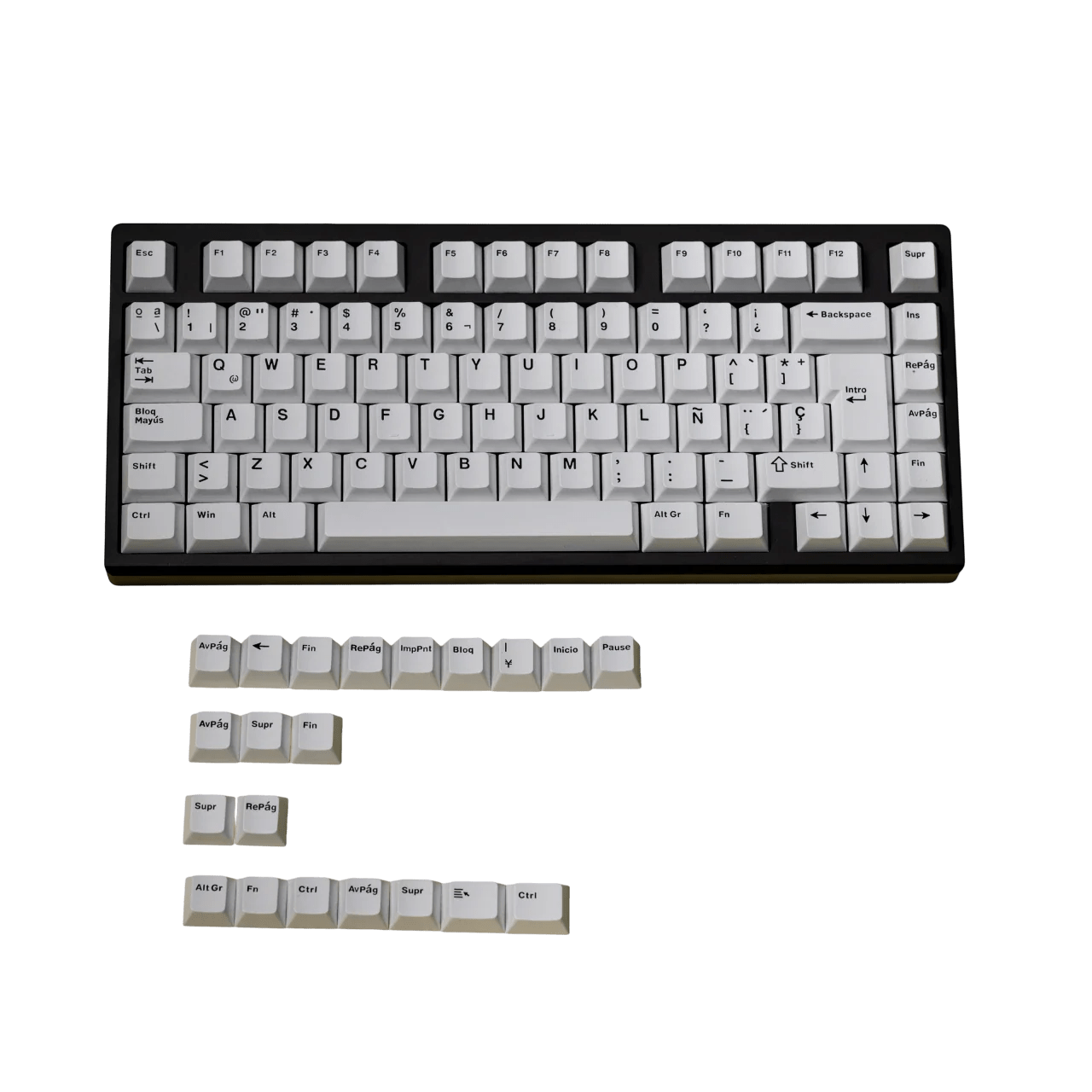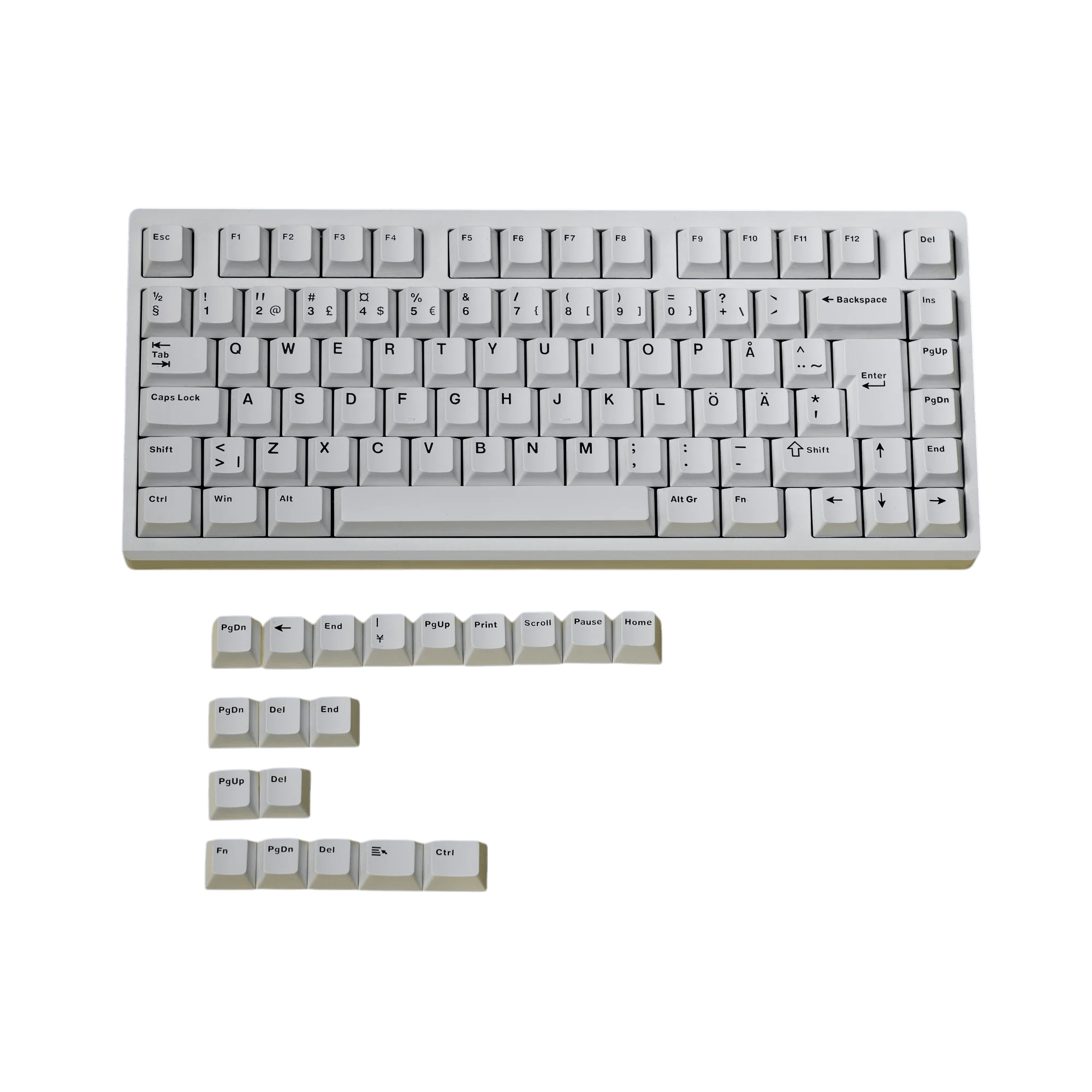Bitte Beachten: Die ISO Varianten kommen zwar mit unterschiedlichen Gehäusefarben jedoch nur mit Schwarzen (White on Black) Keycaps für die ISO-DE Variante und Weißen (Black on White) Keycaps für alle anderen ISO Sprachvarianten.