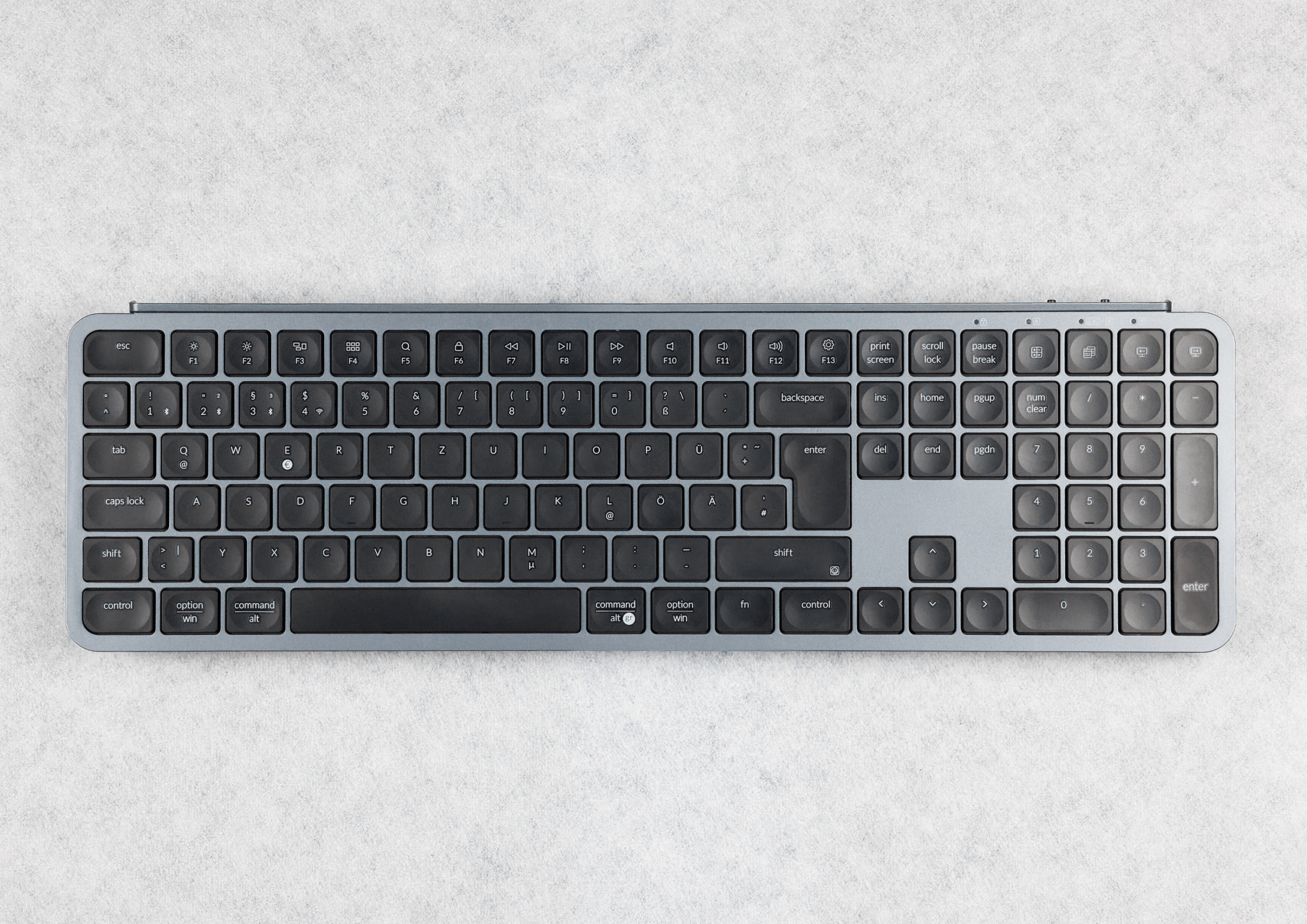 - Mac-Layout mit Windows-Kompatibilität – inklusive passender Keycaps für beide Systeme