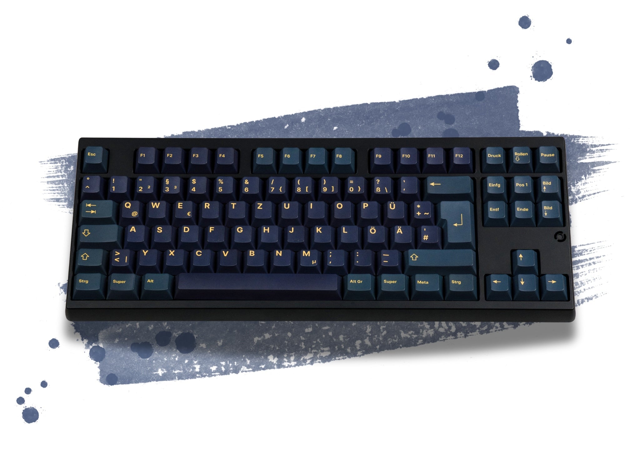 - Dunkelblaue Keycaps: Pantone 2767C – tief und geheimnisvoll wie die Nacht am Tatort