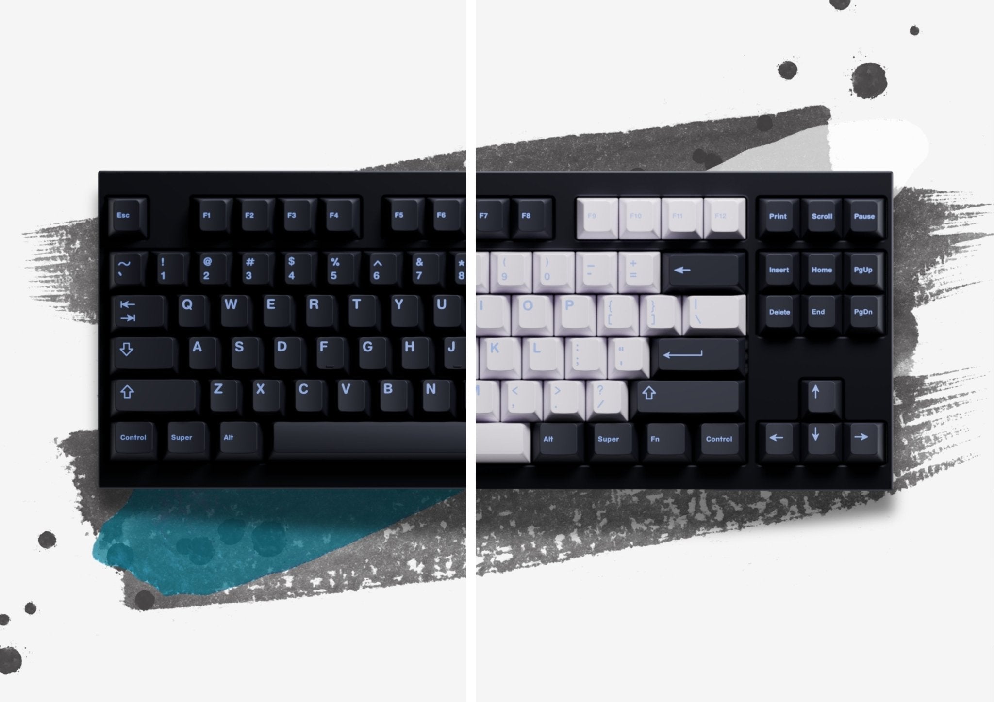 Die Keycaps werden in Double-Shot mit PBT als Material für die Äußere Schicht (Keycap Farbe) und ABS als Material für die innere Schicht (Legends / "Aufdrucke") produziert. Dadurch ergibt sich der typische Wärmere ABS Klang beim Tippen während man die Vorteile des nicht so schnell glänzenden PBT Materials beibehält.