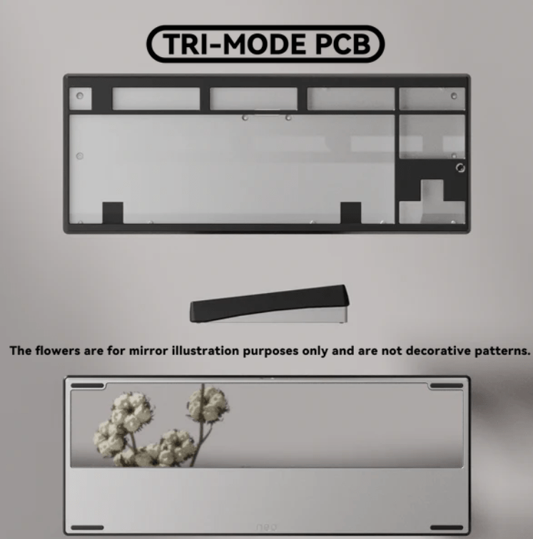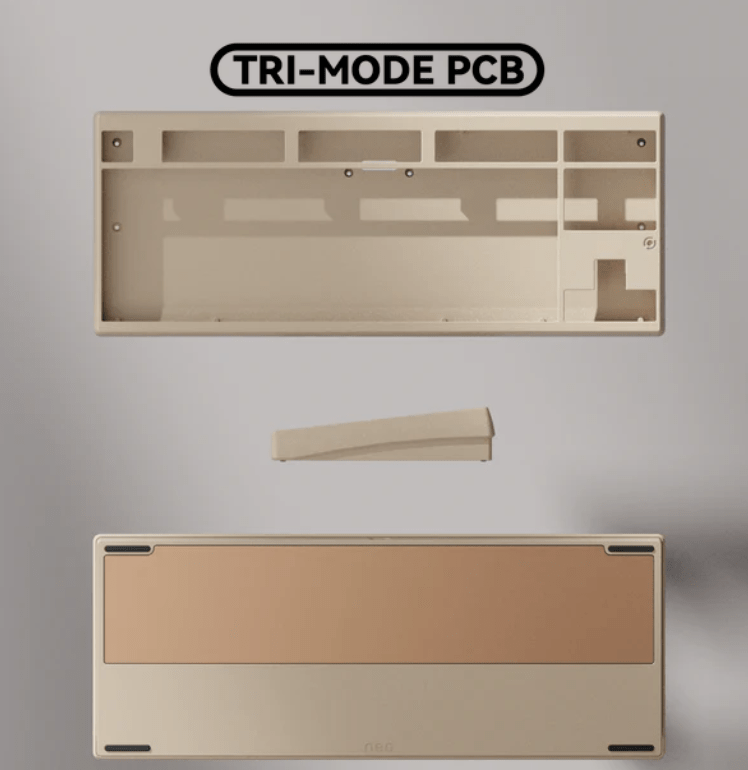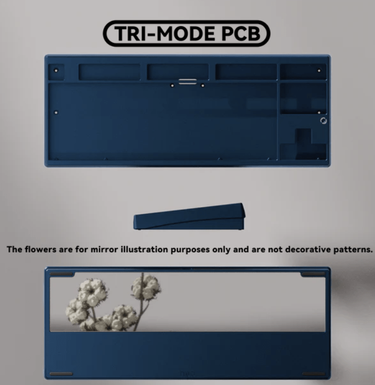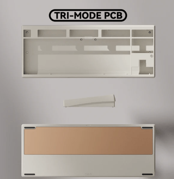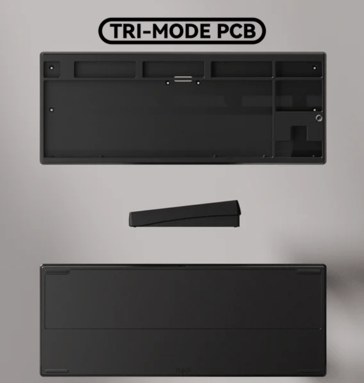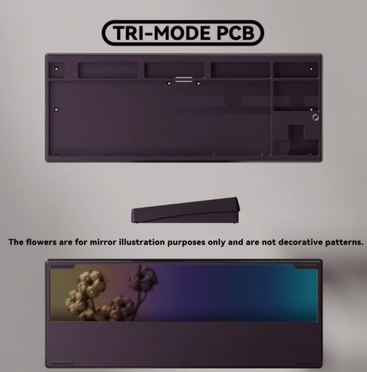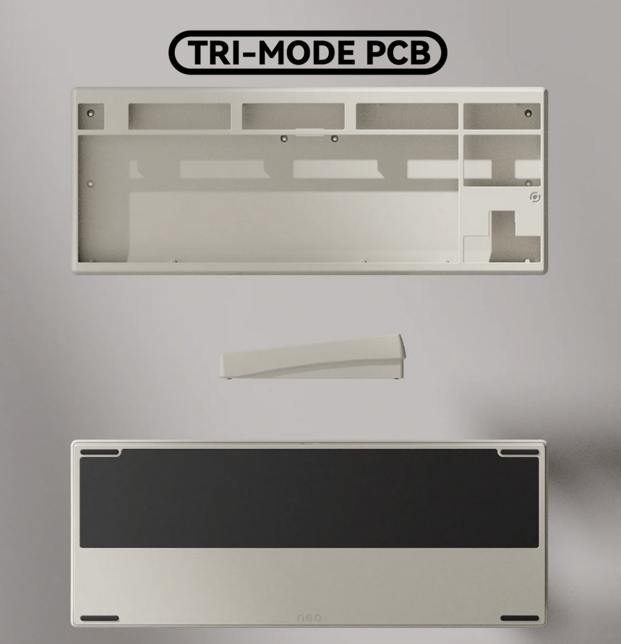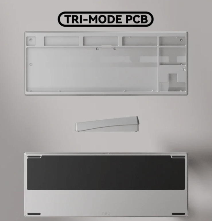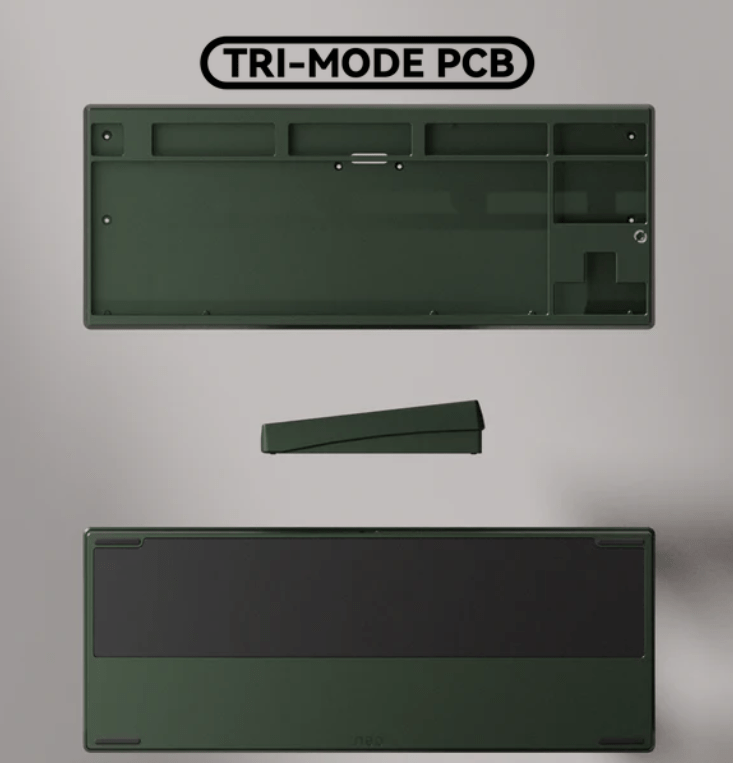 Alle PCBs bieten Unterstützung für ANSI und ISO Layouts. Das Tri-Mode PCB wird inklusive zwei 2200mAh Akkus ausgeliefert und unterstützt neben der Verbindung per Kabel auch 2,4 GHz Wireless und Bluetooth. Die Firmware basiert auf QMK und kann mittels VIA konfiguriert werden.