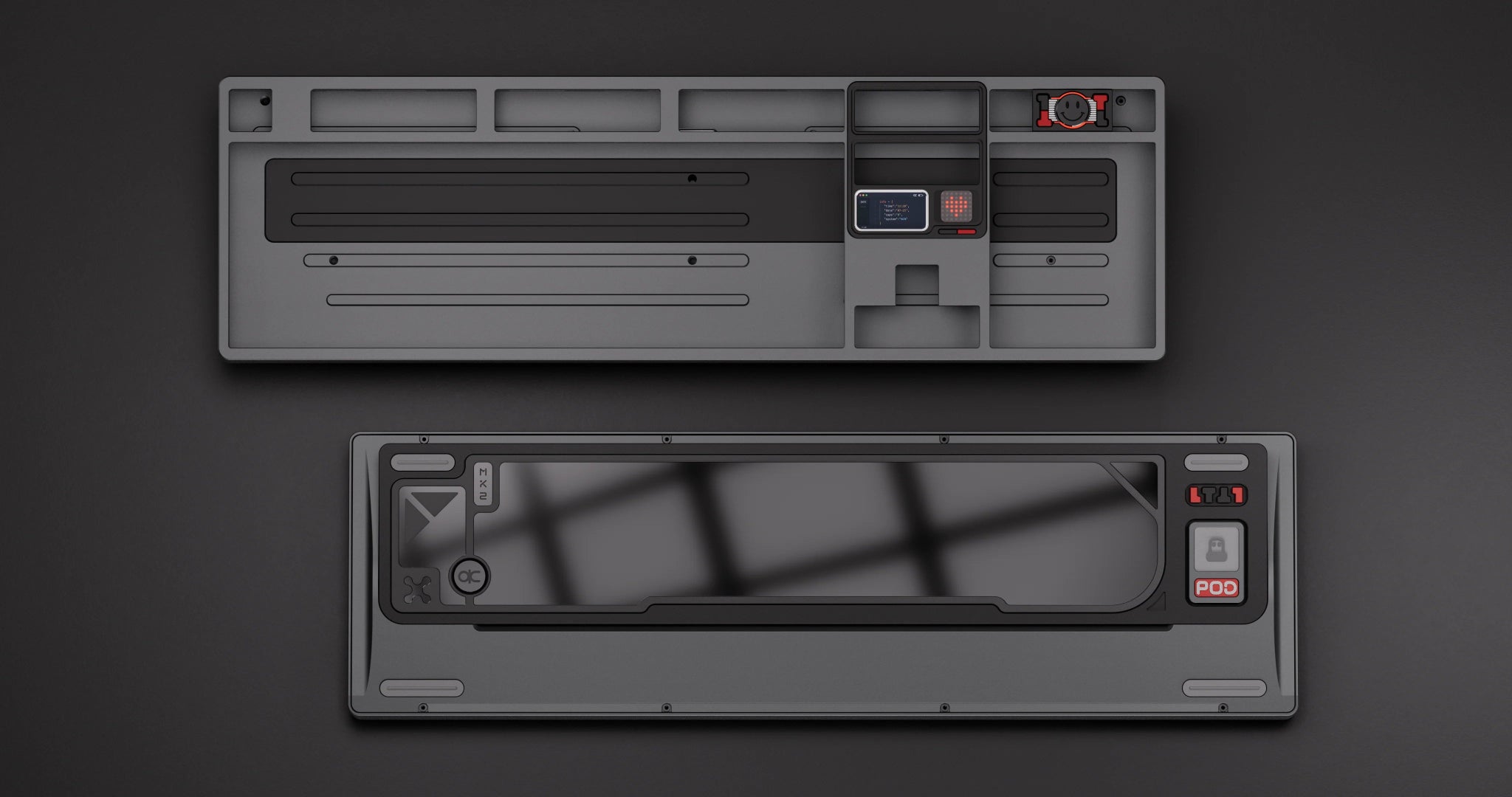 Mit der QK101 wird die Designlinie der QK80 MK2 weitergeführt und auf ein 100% Layout erweitert. Wie auch bei der QK80 MK2 kann das Display und Matrix-DOT Display über QK's eigenen VIA Fork. Anstatt einem Leaf Spring Mount setzt die QK101 auf Gasket Mount und Top Mount. Ganz neu sind Plates für Plate-Mount Stabilizers (nur ANSI und 6.25U Unterstützung) und der Plate Foam / Cushio der bereits in die Plate mit eingearbeitet wurde.
